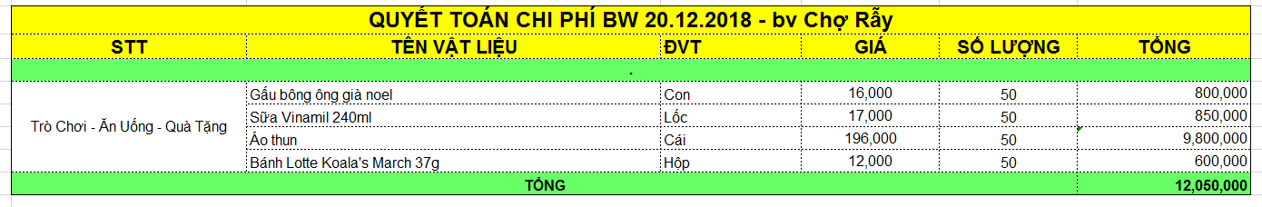 BẢNG QUYẾT TOÁN NGÂN SÁCH DỰ ÁN