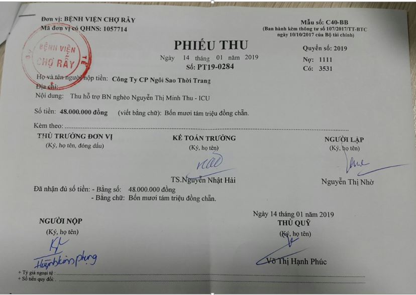 Ngày 9/01/2019 vừa qua ngay khi đọc được thông tin em Nguyễn Thị Minh Thu - từ một cô gái hoàn toàn khỏe mạnh, chỉ sau vài ngày cảm thấy hơi mệt trong người, Minh Thu đã suýt mất mạng. Có lúc em rơi vào tình trạng sốc tim, nhịp tim rất yếu, chậm chỉ còn khoảng 10%.