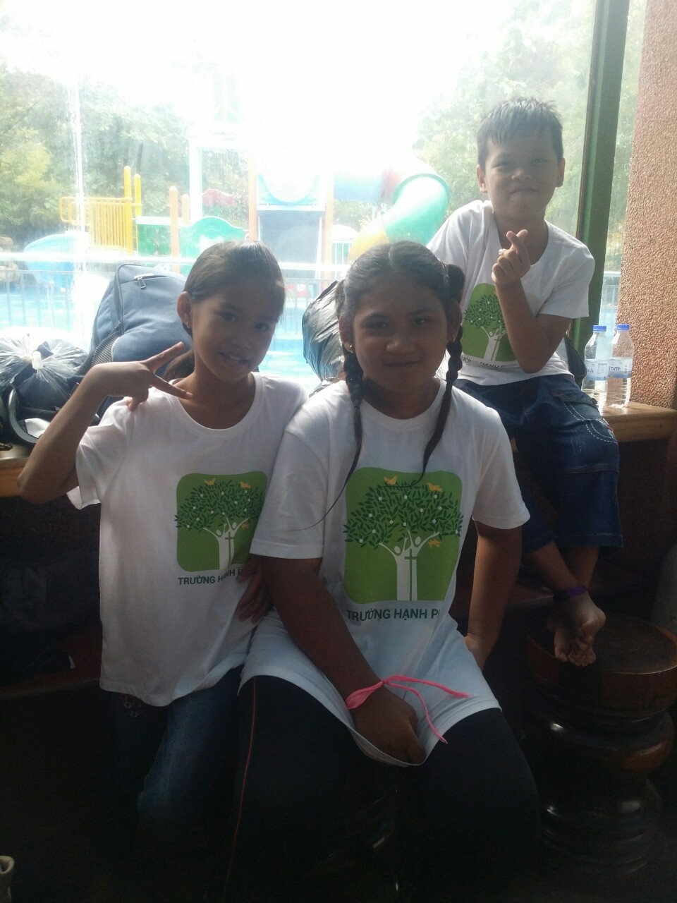 Ngoài ra còn có 200 chiếc áo thun đồng phục xinh xắn có in tên ngôi trường mà các em đang học.