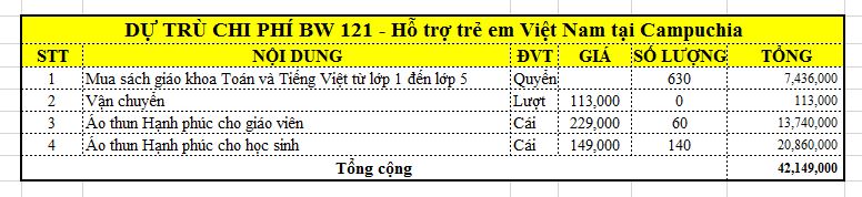 KẾ HOẠCH SỬ DỤNG SỐ TIỀN TÀI TRỢ