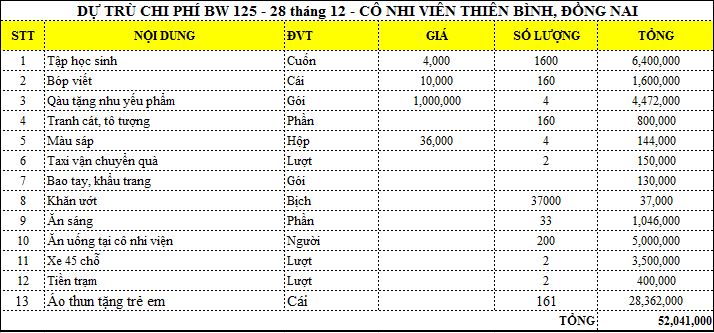 | Chi phí quà tặng, tổ chức | 52,041,000 |