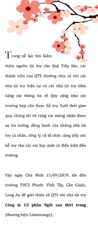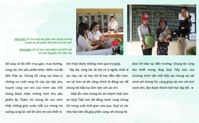 BW Project và Quỹ tiếp sức nỗ lực hết sức đề cùng gia đình giảm áp lực mưu sinh . Ngoài chi phí hàng tháng, Quỹ tiếp sức cũng thường xuyên tổ chức các khóa tập huấn kỹ năng sống, các buổi học ngoại khóa giúp các em bô sung kiến thức và kỹ năng để bảo vệ chính mình, theo đuổi ước mơ nghề nghiệp tốt hơn trong tương lai