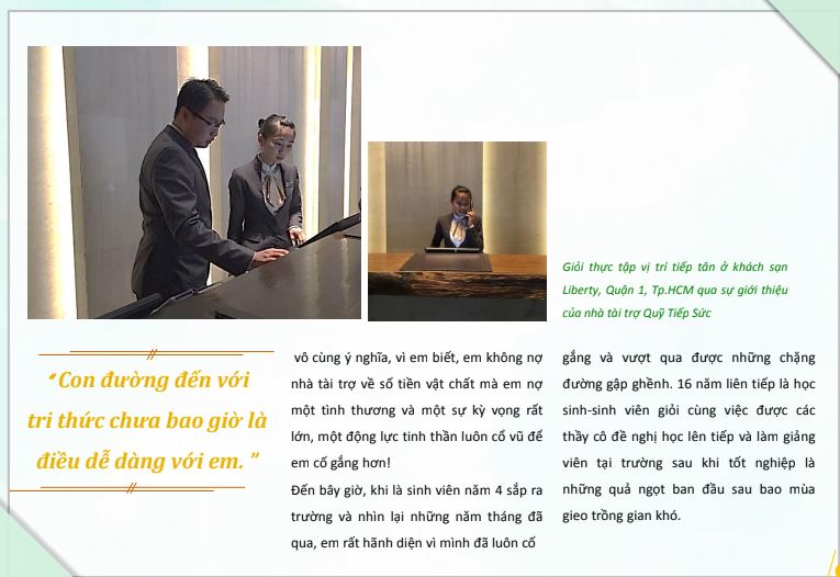Kết nối với các cá nhân, tổ chức trong và ngoài nước để hỗ trợ học bổng cho các em sinh viên CĐ-ĐH có hoàn cảnh khó khăn.