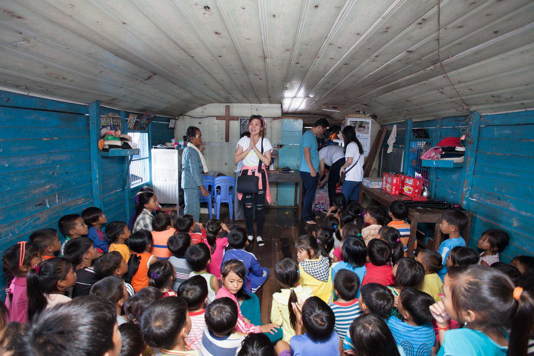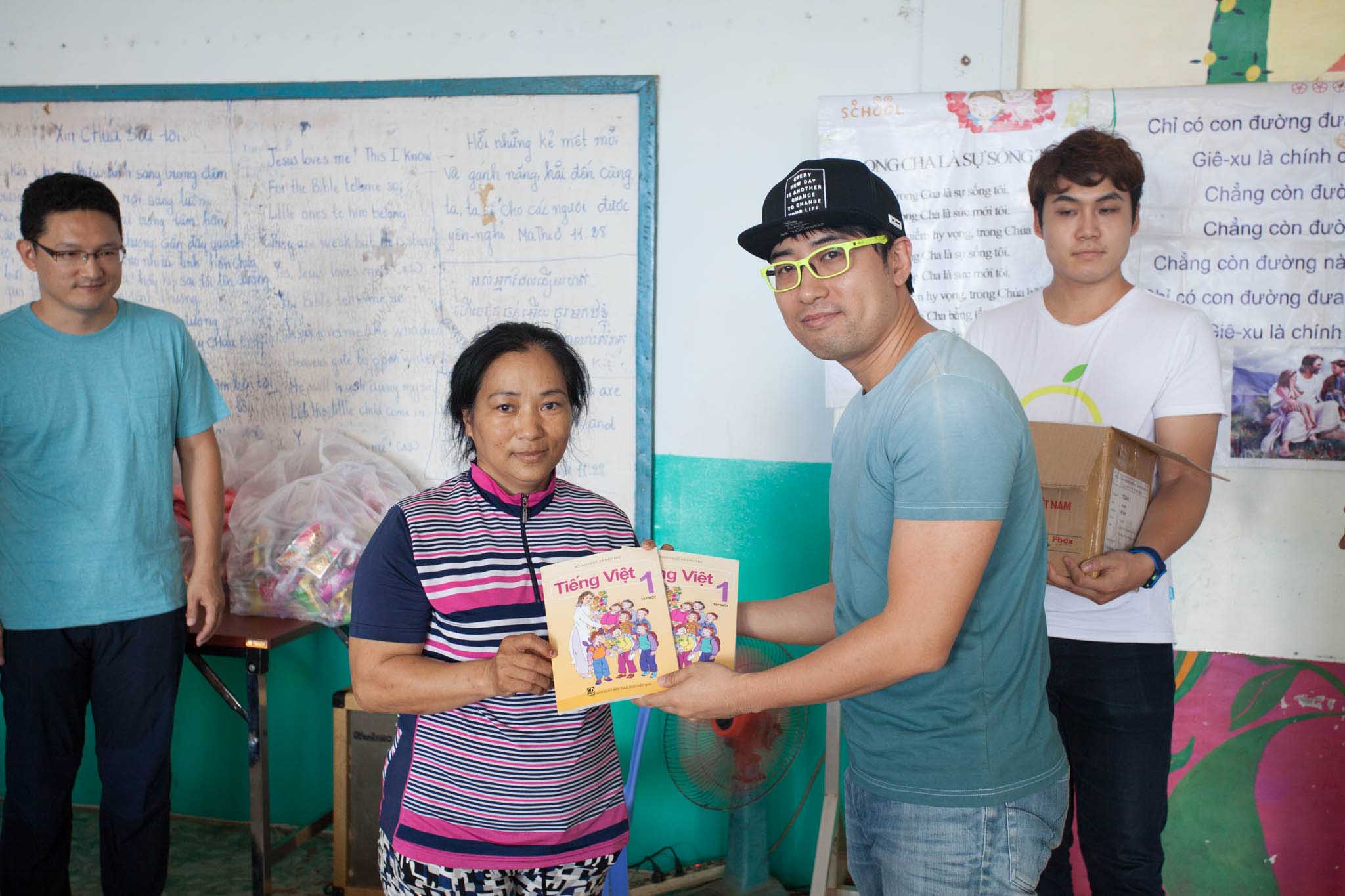 Thăm hỏi, tặng quà và trao những phần học bổng bao gồm sách vở, bánh kẹo cho các em nhỏ Việt Nam tại Campuchia.