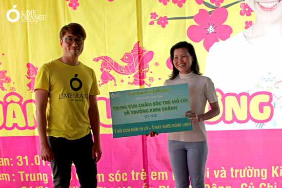 31-01-2015 Toàn thể nhân viên Lime Orange đã có chuyến thăm Trung Tâm chăm sóc trẻ em Củ Chi. Chương trình lần này Lime Orange đã dọn dẹp, sơn sửa cho 6 phòng học và sinh hoạt của trung tâm. Tổ chức vui chơi giao lưu cùng các em. Trao tặng bánh kẹo, đồ dùng học tập cho 30 em nhỏ và học bổng cho 8 em có hoàn cảnh đặc biệt khó khăn. Trao tặng cho mái ấm 1 nồi cơm điện và 1 máy nước nóng lạnh.