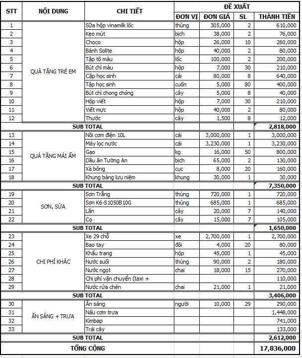 | Quà tặng cho các em và trung tâm | 10,168,000 |
