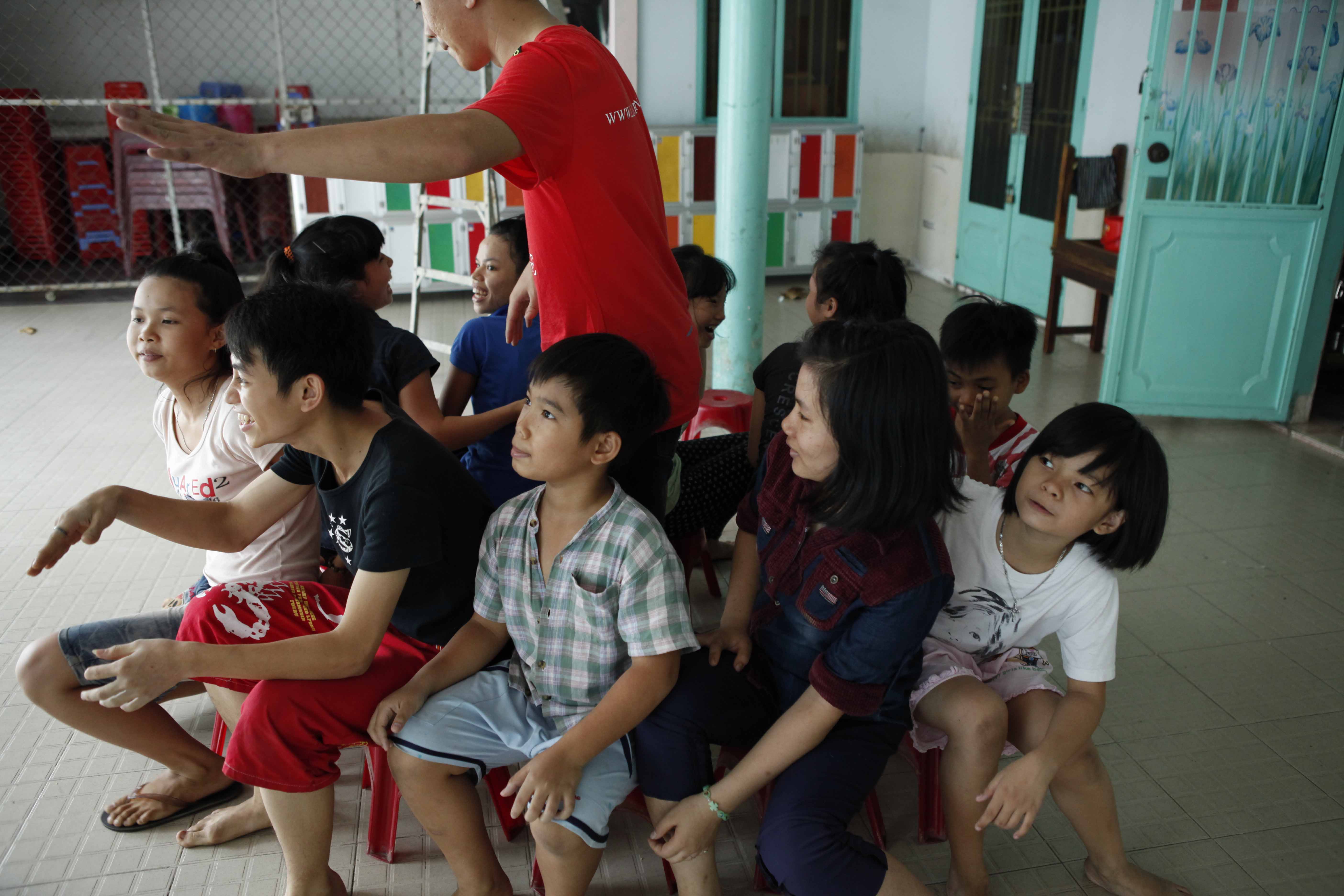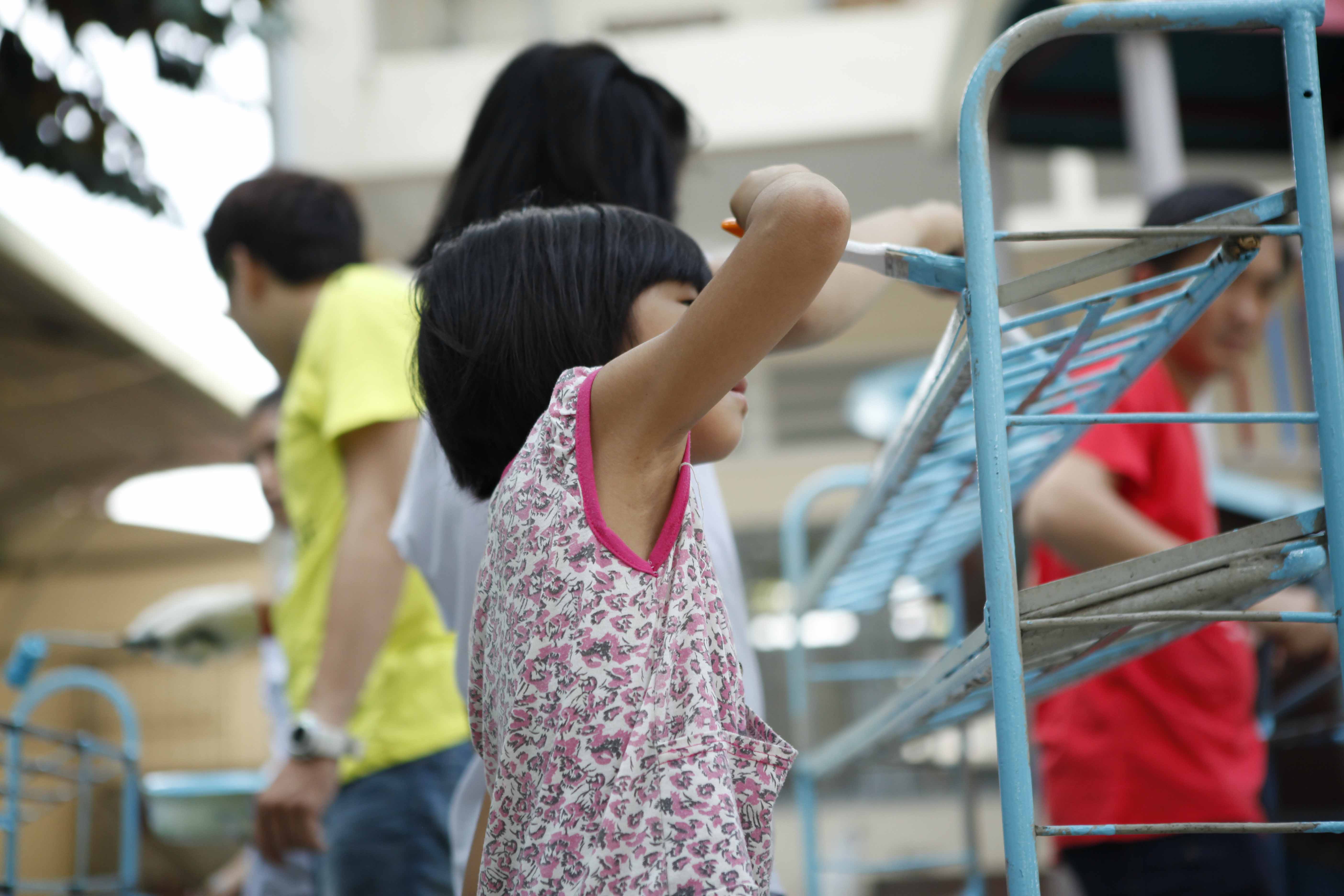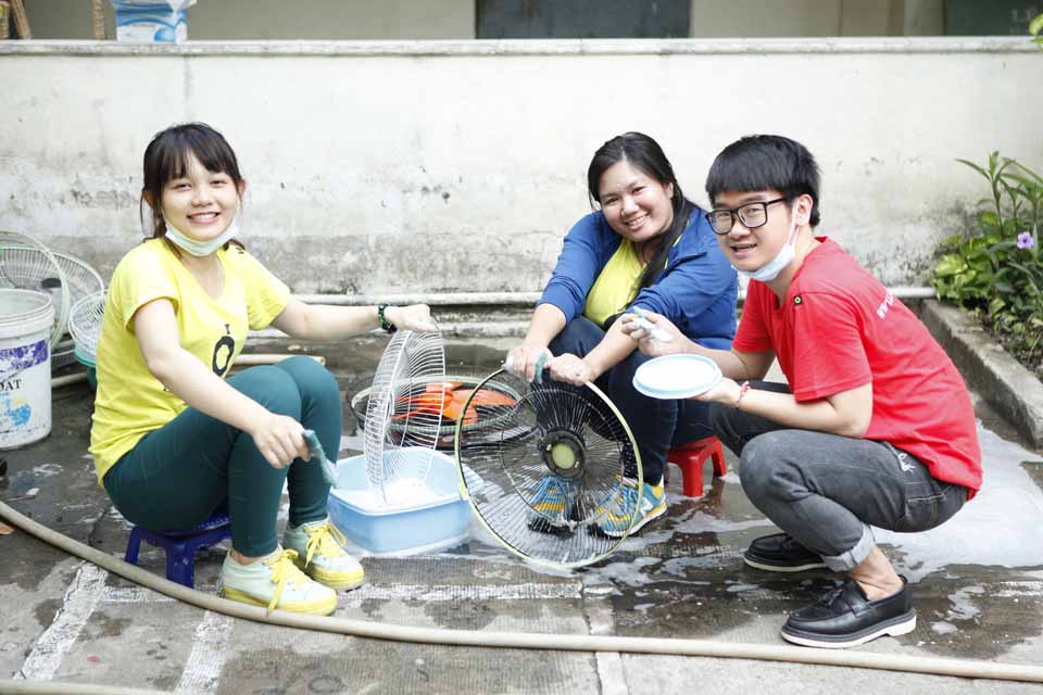 Tổ chức vui chơi cùng các em, dọn dẹp vệ sinh và sơn sữa tủ kệ. Hỗ trợ nhu yếu phẩm hàng ngày.
