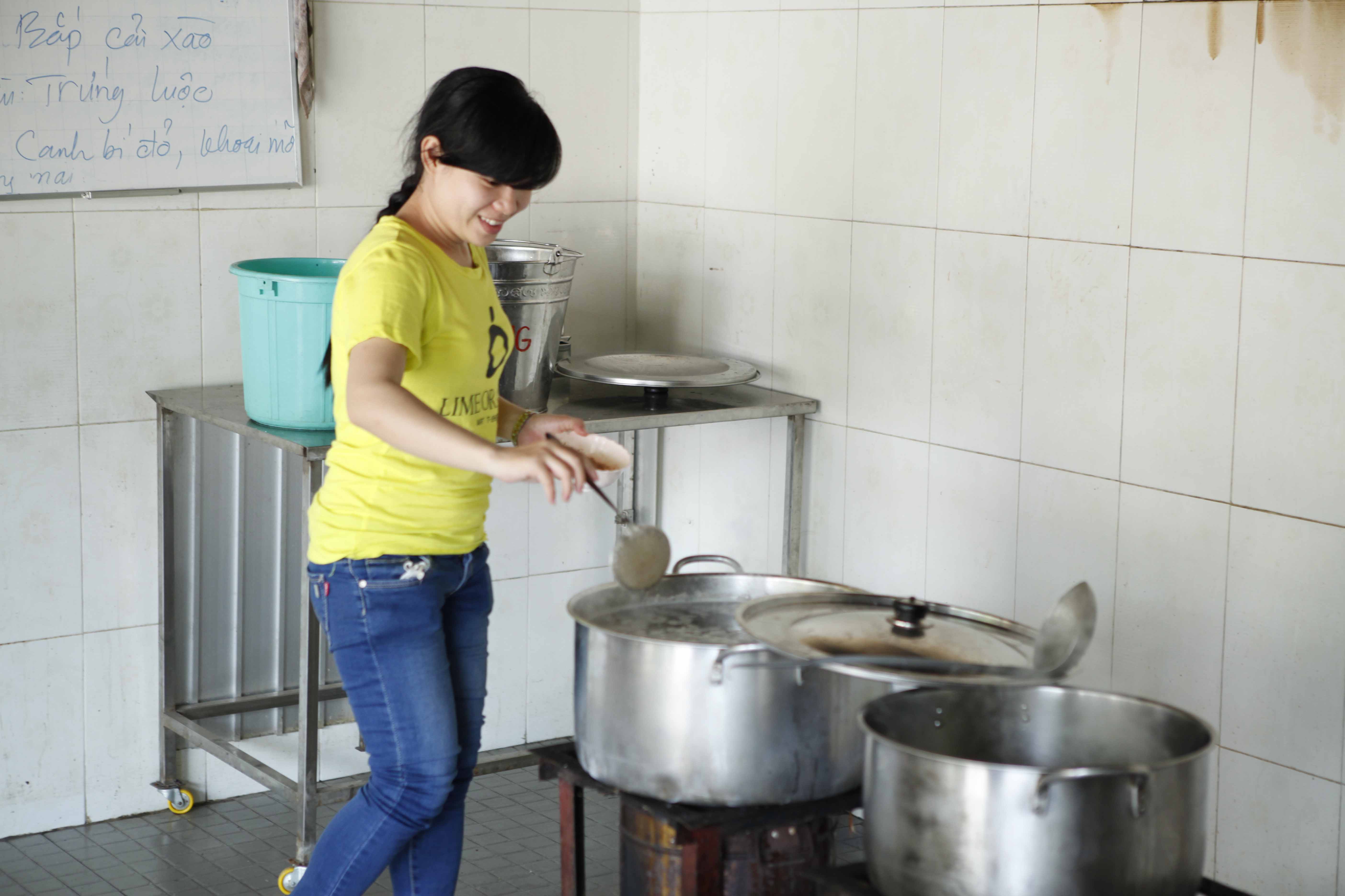 3) Phụ giúp và phục vụ nấu đồ ăn cho các em