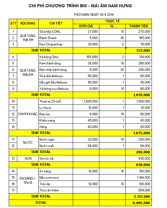 BẢNG QUYẾT TOÁN NGÂN SÁCH DỰ ÁN