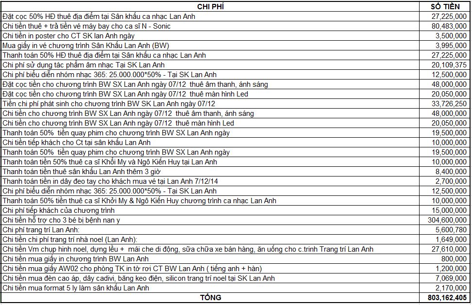 | Chi phí tổ chức chương trình | 498,562,405 |
