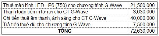 | Trả tiền thuê dù cho chương trình G - Wave | 7,500,000 |