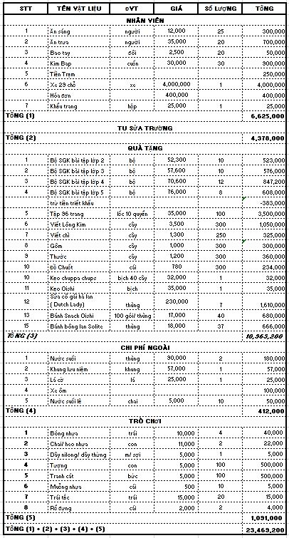 | Quà tặng cho các em | 10,963,200 |