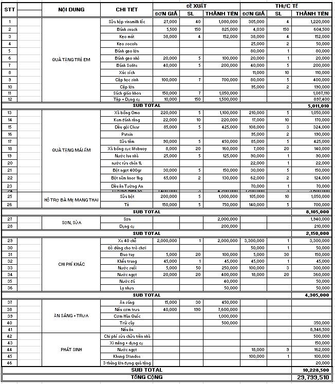 BẢNG QUYẾT TOÁN NGÂN SÁCH DỰ ÁN