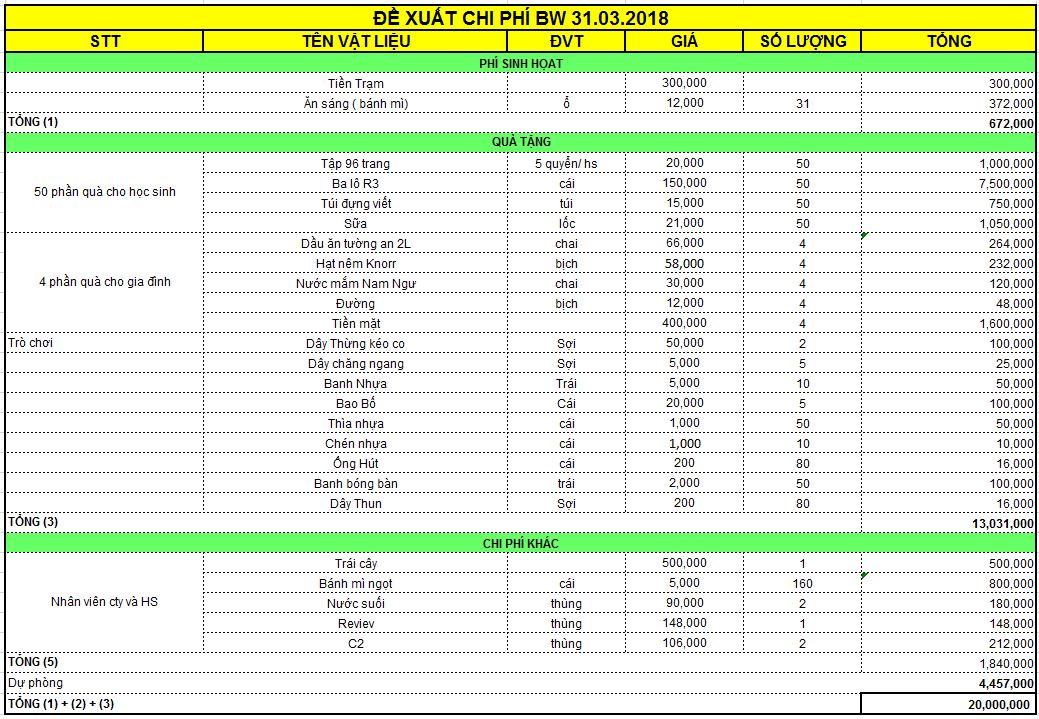 KẾ HOẠCH SỬ DỤNG SỐ TIỀN TÀI TRỢ