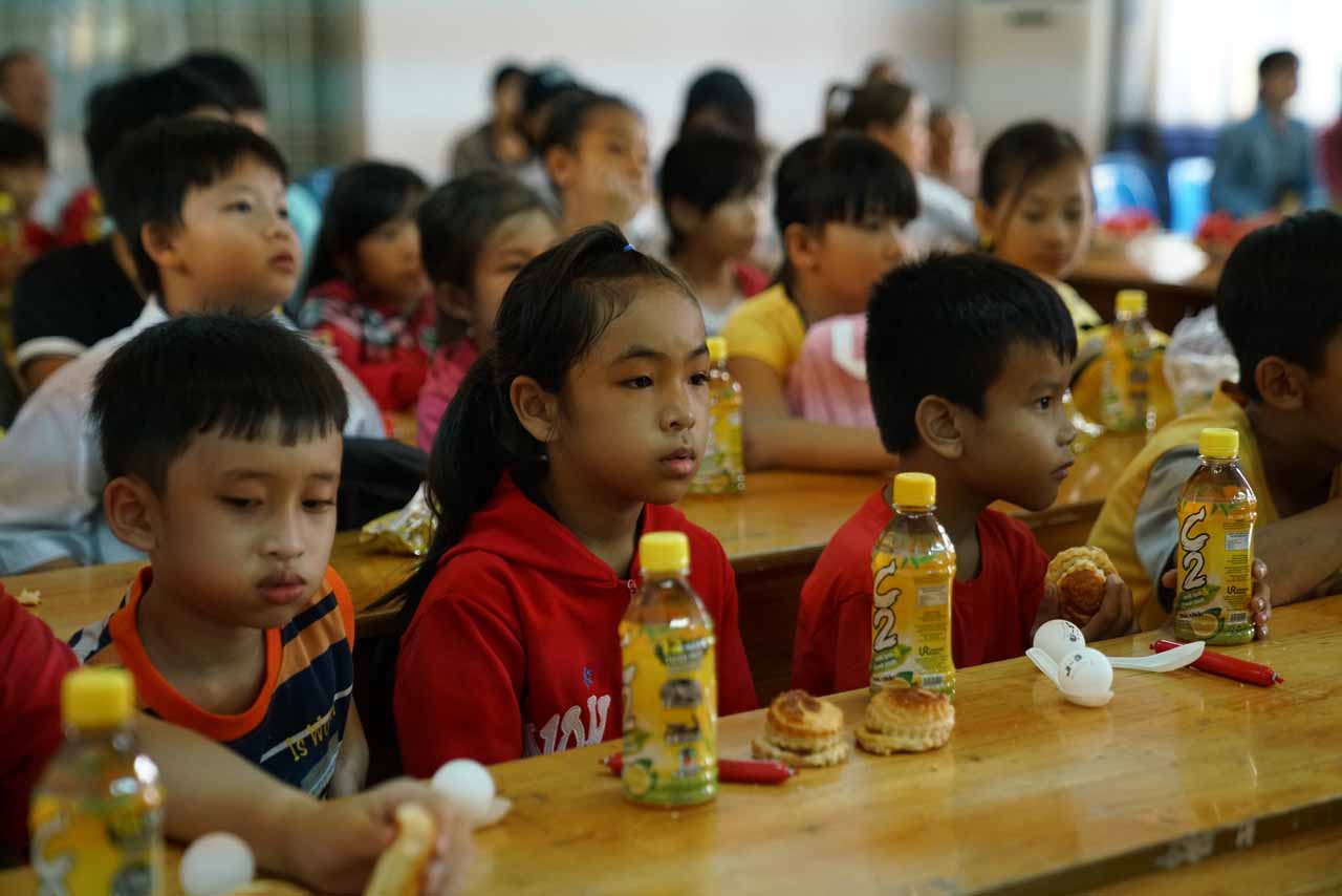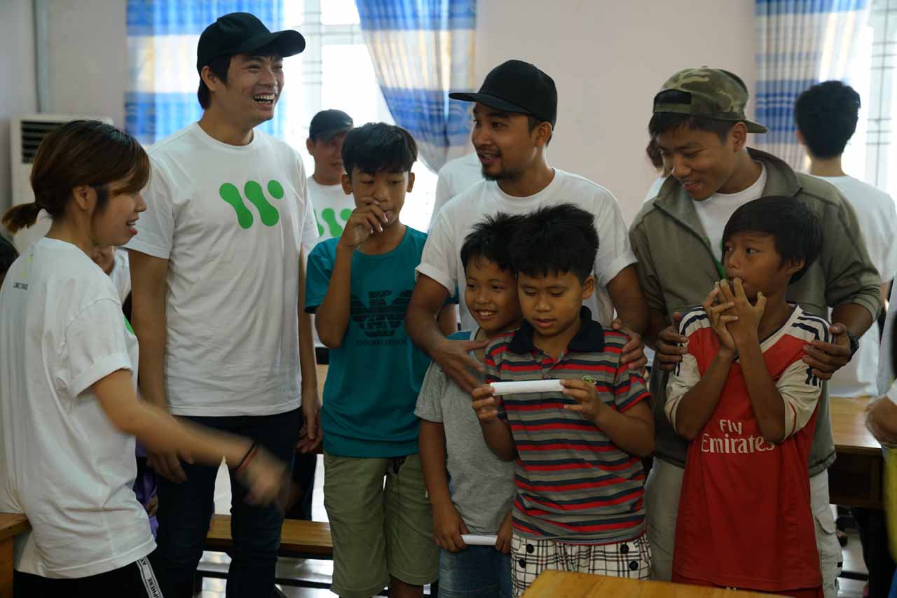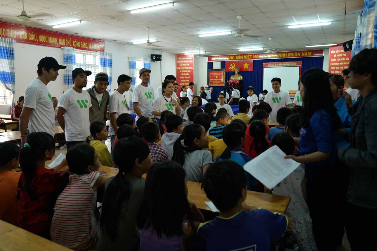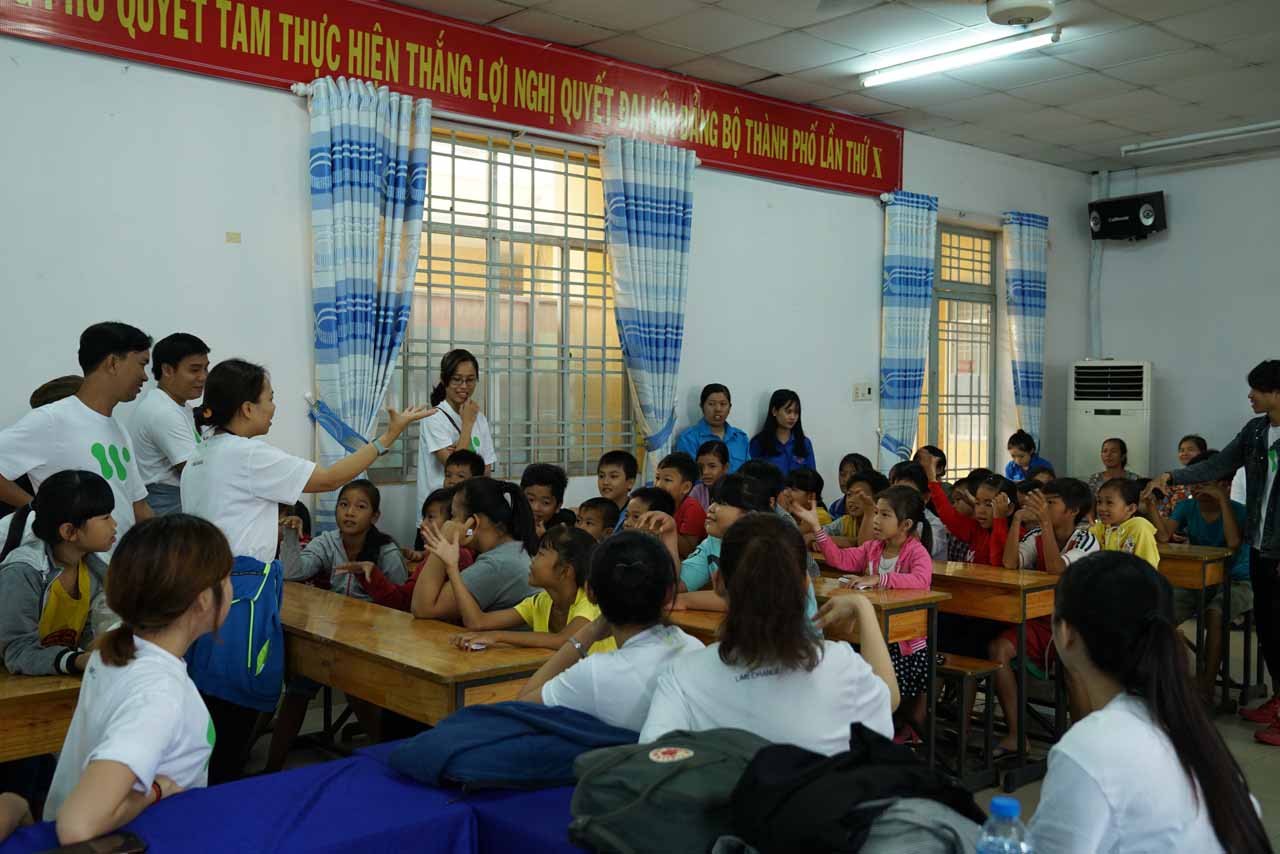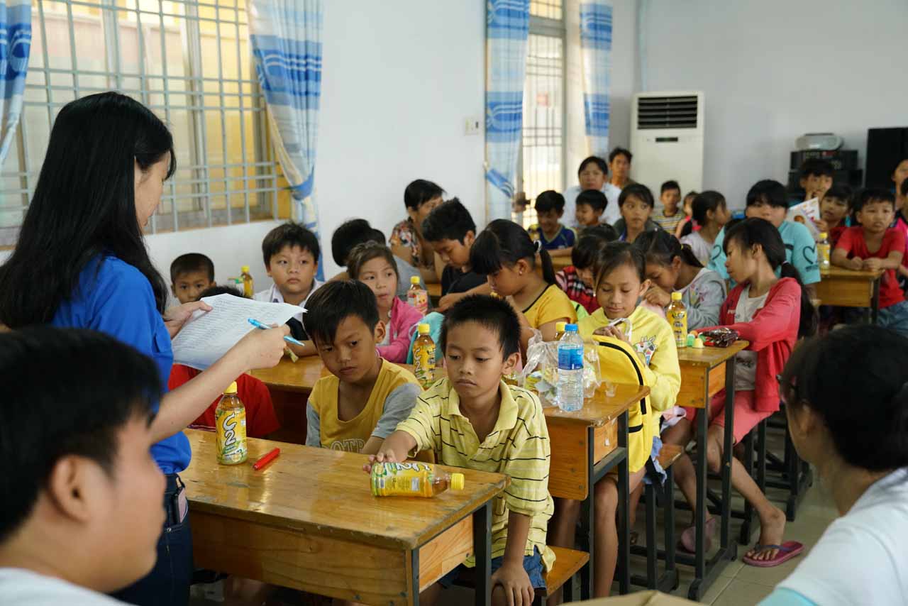 Tổ chức các hoạt động khiến các em bộc lộ năng khiếu nghệ thuật như vẽ tranh, tô tượng, ca hát, trao tặng học bổng, sách vở, bánh kẹo cho các bé
