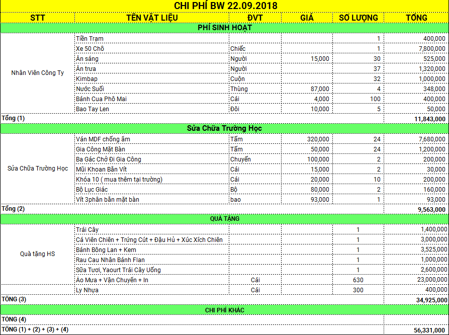 | Chi Phí Tổ Chức Vui Chơi Và Quà Tặng Cho Các Em | 46,768,000 |